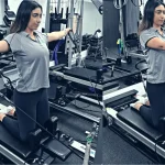 In high kneeling on the reformer engage your core muscles. Place your hands in the straps starting at your midline and then pull the straps and your arms apart training your upper back muscles and improving your posture. Adjust springs to change level of difficulty.